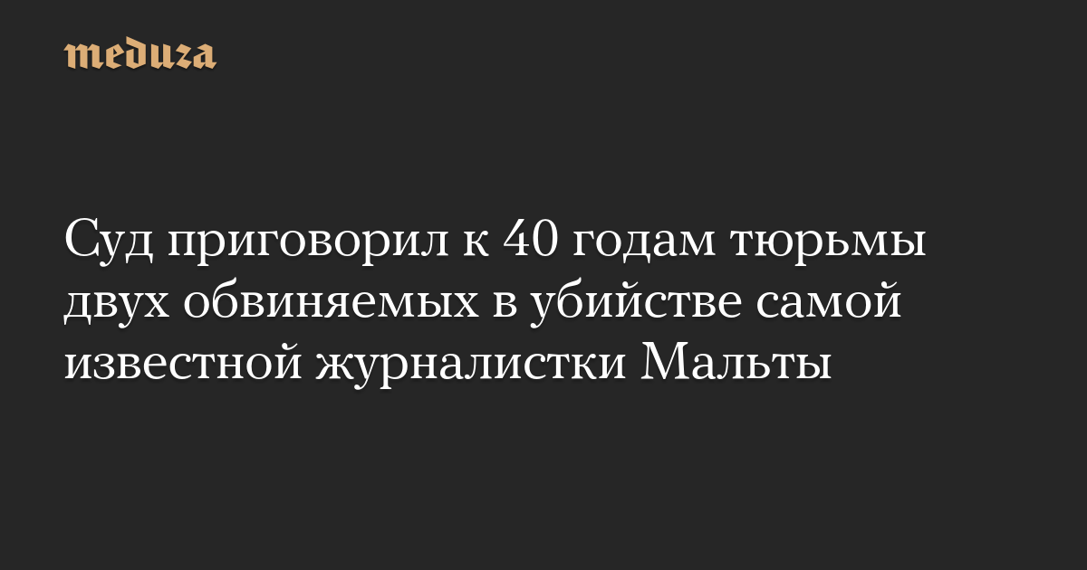 Суд на Мальте приговорил к 40 годам лишения свободы братьев Альфреда и Джорджа Диджиоргио, обвиняемых в убийстве местной журналистки Дафны Каруаны Галиции в 2017 году. Об этом сообщает Times of Malta.
