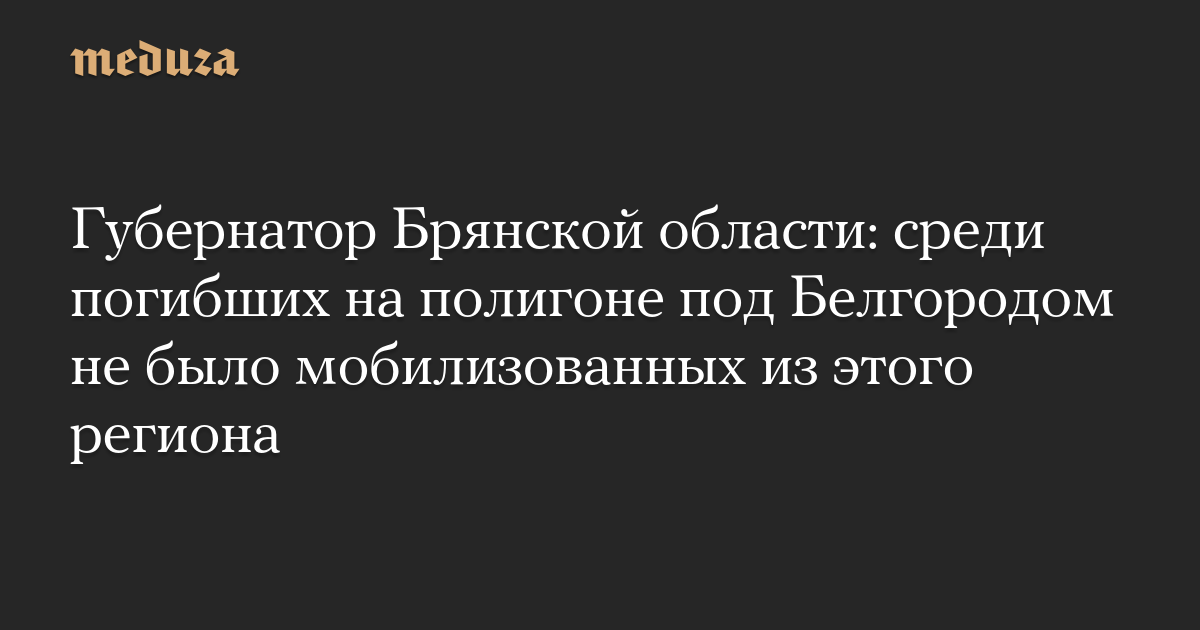 Губернатор Брянской области Александр Богомаз заявил, что среди погибших в результате стрельбы на полигоне под Белгородом нет мобилизованных из этого региона.