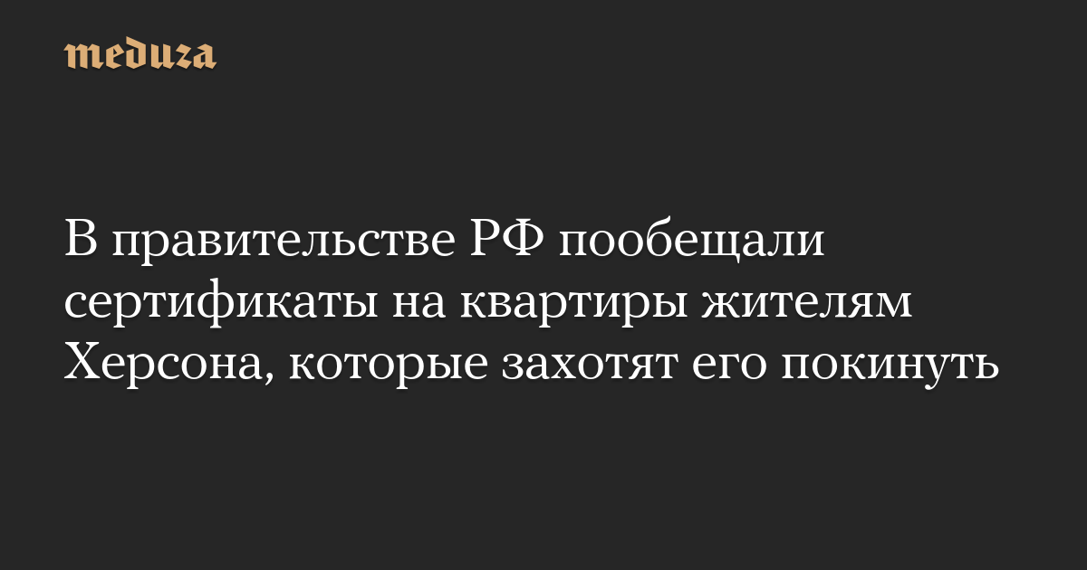 В правительстве РФ пообещали сертификаты на квартиры жителям Херсона, которые захотят его покинуть