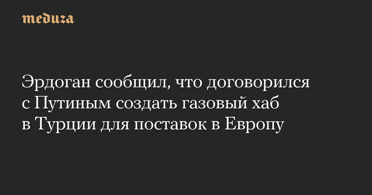 Президент Турции Реджеп Тайип Эрдоган объявил, что на территории Турции будет создан международный газовый хаб для поставок российского топлива в Европу.