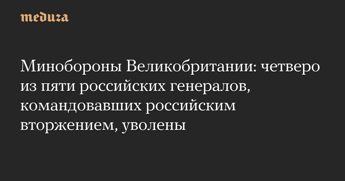 Минобороны Великобритании: четверо из пяти российских генералов, командовавших российским вторжением, уволены
