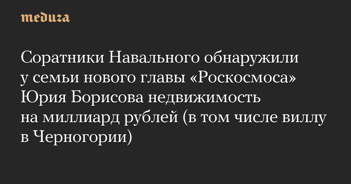 Соратники Навального обнаружили у семьи нового главы «Роскосмоса» Юрия Борисова недвижимость на миллиард рублей (в том числе виллу в Черногории)
