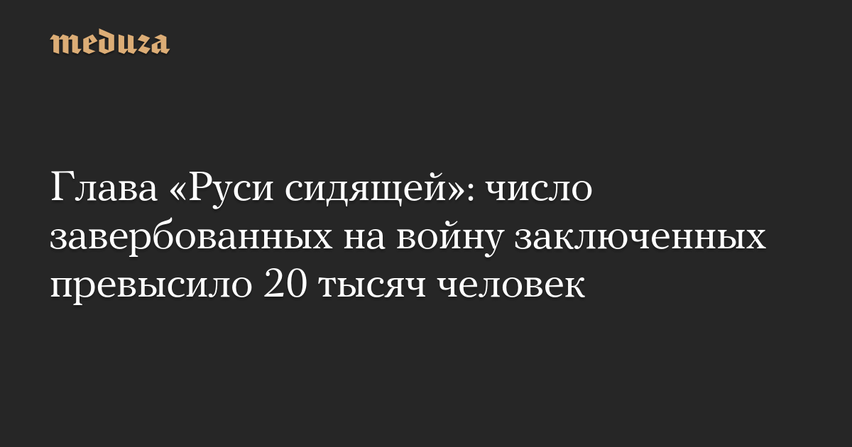 Число российских заключенных, завербованных для участия в войне в Украине, превышает 20 тысяч человек, сообщает «Агентство» со ссылкой на главу фонда «Русь сидящая» Ольгу Романову.