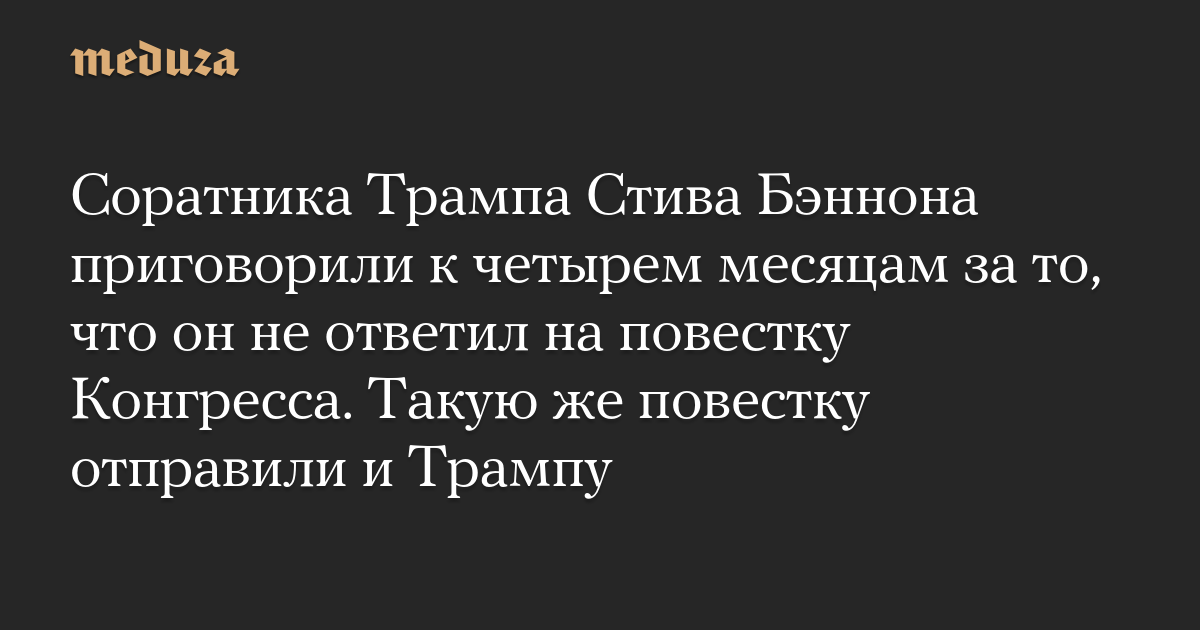 Соратника Трампа Стива Бэннона приговорили к четырем месяцам за то, что он не ответил на повестку Конгресса. Такую же повестку отправили и Трампу