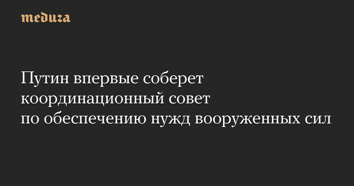 Путин впервые соберет координационный совет по обеспечению нужд вооруженных сил