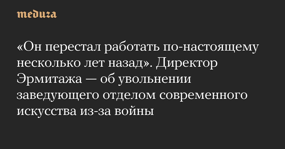 «Он перестал работать по-настоящему несколько лет назад». Директор Эрмитажа — об увольнении заведующего отделом современного искусства из-за войны
