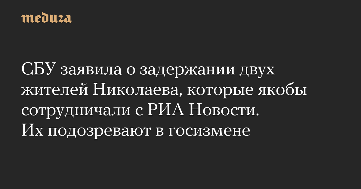 СБУ заявила о задержании двух жителей Николаева, которые якобы сотрудничали с РИА Новости. Их подозревают в госизмене