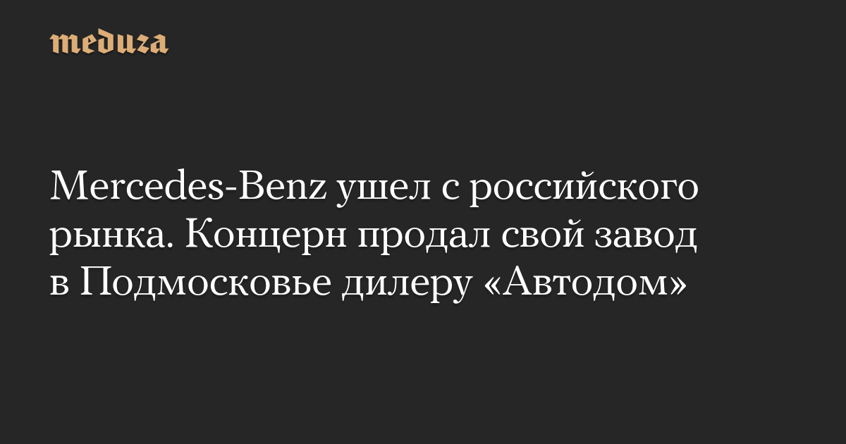 Mercedes-Benz ушел с российского рынка. Концерн продал свой завод в Подмосковье дилеру «Автодом»