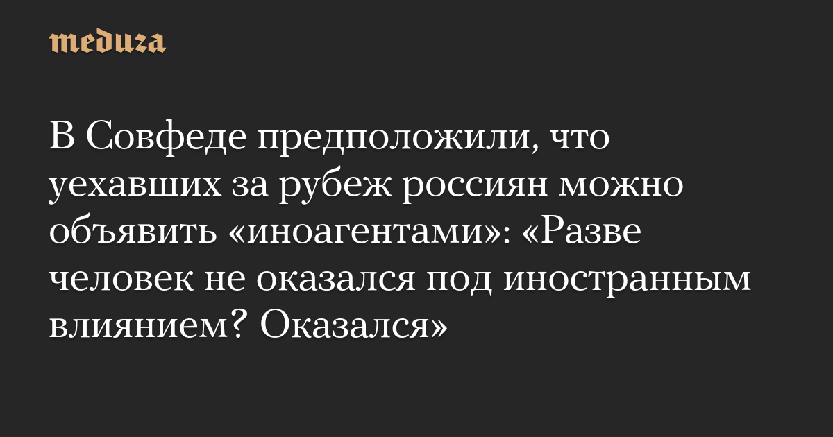 В Совфеде предположили, что уехавших за рубеж россиян можно объявить «иноагентами»: «Разве человек не оказался под иностранным влиянием? Оказался»