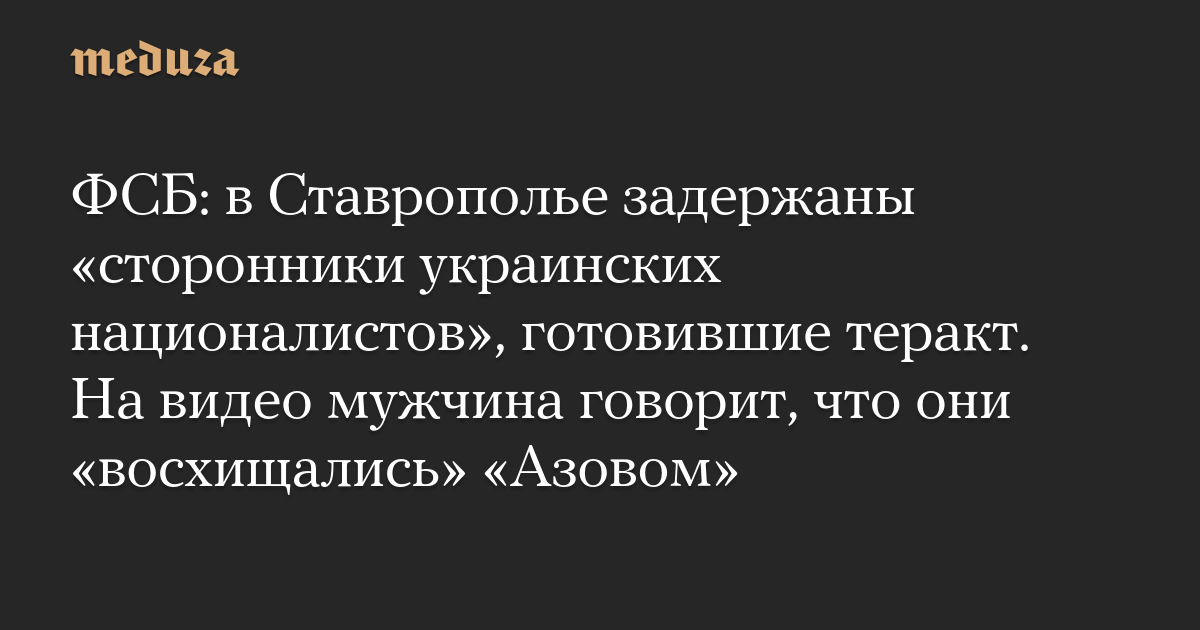 ФСБ: в Ставрополье задержаны «сторонники украинских националистов», готовившие теракт. На видео мужчина говорит, что они «восхищались» «Азовом»
