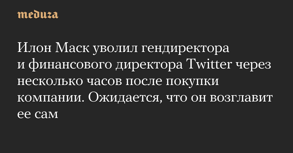 Илон Маск уволил гендиректора и финансового директора Twitter через несколько часов после покупки компании. Ожидается, что он возглавит ее сам