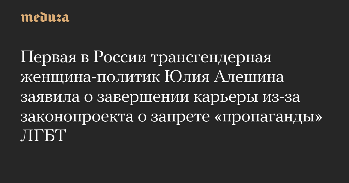 Первая в России трансгендерная женщина-политик Юлия Алешина заявила о завершении карьеры из-за законопроекта о запрете «пропаганды» ЛГБТ
