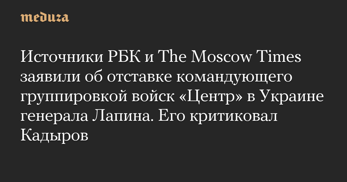 Источники РБК и The Moscow Times заявили об отставке командующего группировкой войск «Центр» в Украине генерала Лапина. Его критиковал Кадыров