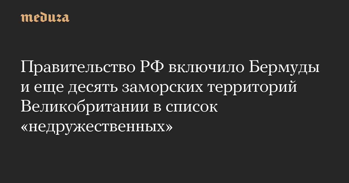 Правительство РФ включило Бермуды и еще десять заморских территорий Великобритании в список «недружественных»