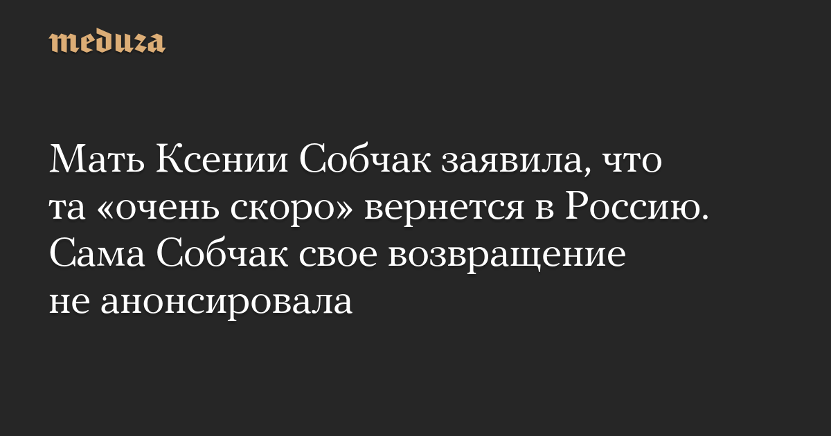 Мать Ксении Собчак заявила, что та «очень скоро» вернется в Россию. Сама Собчак свое возвращение не анонсировала