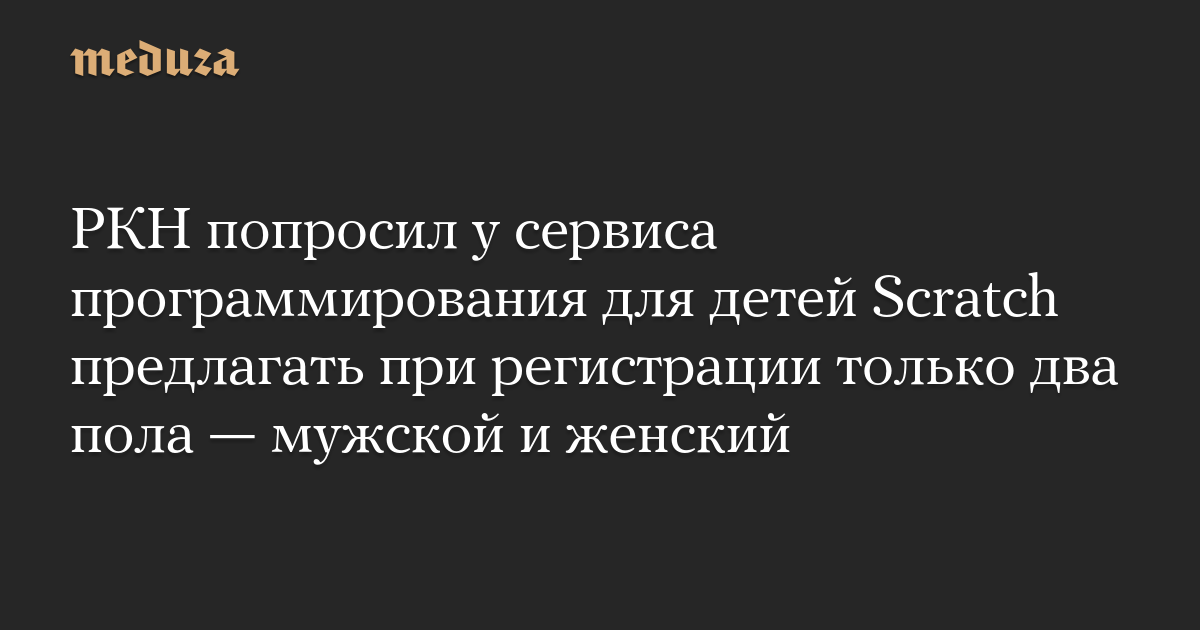 Роскомнадзор (РКН) попросил администрацию образовательного интернет-сервиса Scratch изменить набор данных, собираемых при регистрации российских пользователей, оставив только два «варианта пола» — мужской и женский. Об этом сообщается на сайте ведомства.