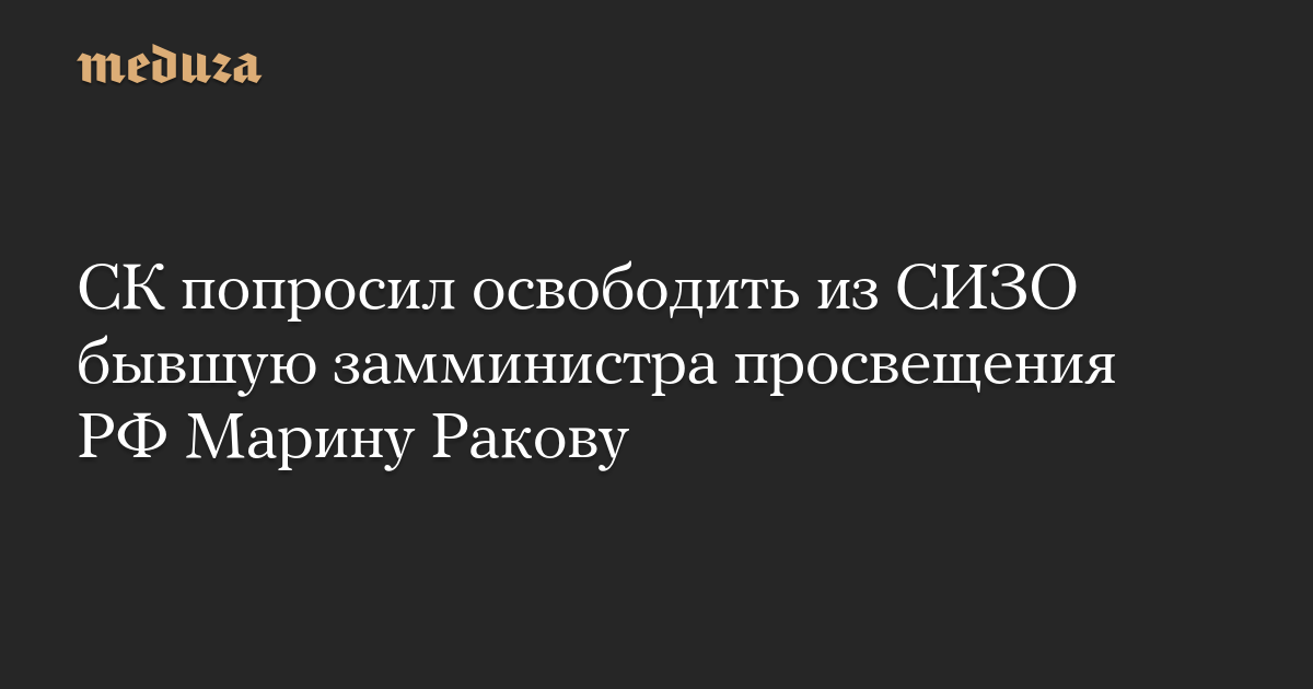Следователь СК обратился в Московский городской суд с ходатайством, в котором попросил отпустить из следственного изолятора бывшую замминистра просвещения России Марину Ракову, которую обвиняют по делу о хищении более 50 миллионов рублей у Минпросвещения РФ.