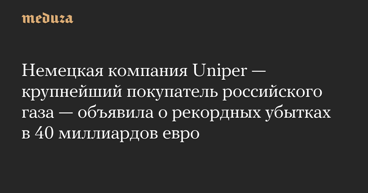 Немецкая компания Uniper — крупнейший покупатель российского газа — объявила о рекордных убытках в 40 миллиардов евро