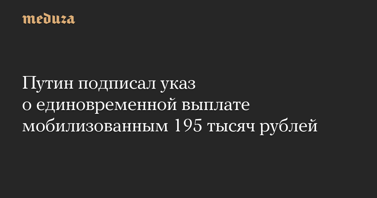 Ранее Путин говорил, что 195 тысяч рублей — минимальный размер ежемесячных выплат мобилизованным. Связан ли указ 3 ноября о единовременной выплате с выплатами ежемесячными, пока неясно.