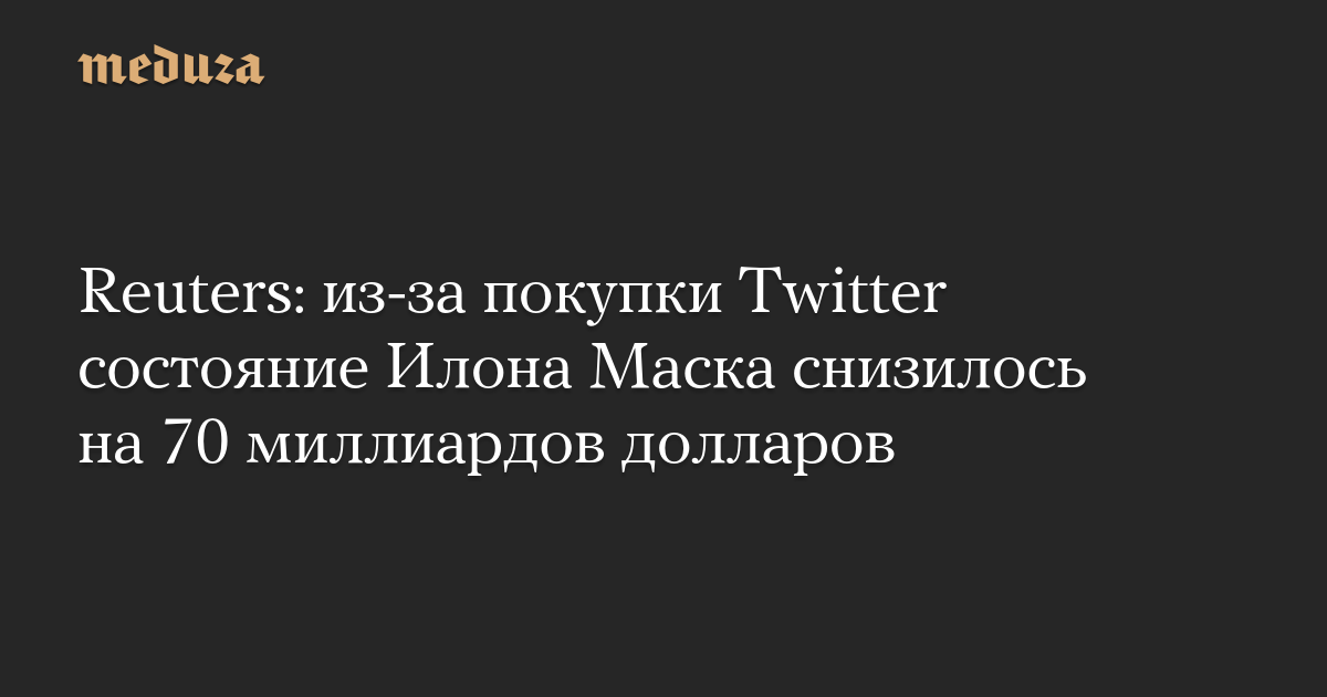 Состояние Илона Маска с момента, когда в апреле он объявил о намерении приобрести соцсеть Twitter, снизилось на 70 миллиардов долларов, подсчитало агентство Reuters.