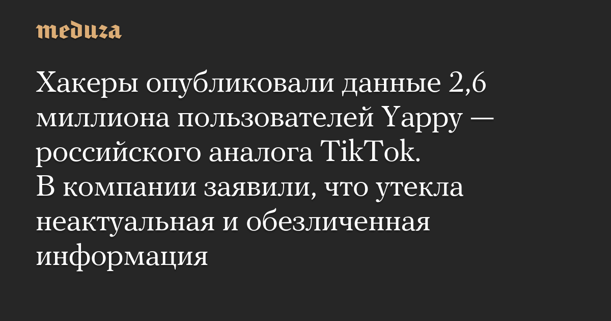 Хакеры опубликовали данные 2,6 миллиона пользователей Yappy — российского аналога TikTok. В компании заявили, что утекла неактуальная и обезличенная информация