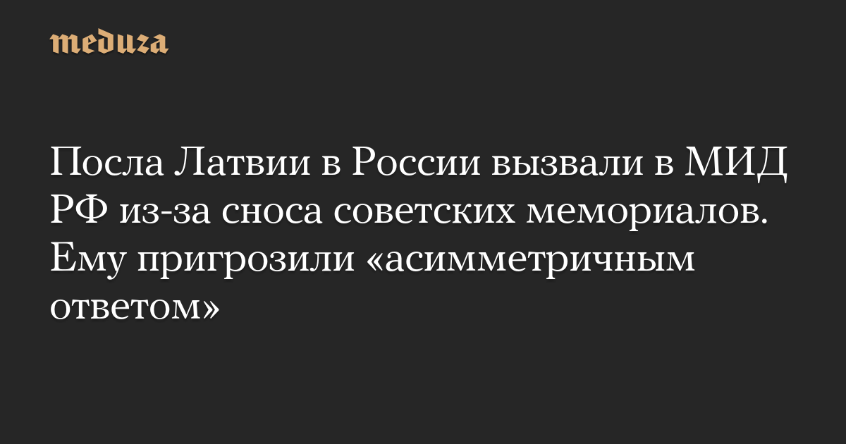 Посла Латвии в России вызвали в МИД РФ из-за сноса советских мемориалов. Ему пригрозили «асимметричным ответом»