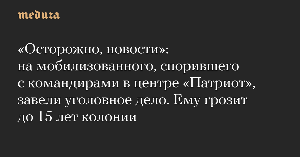 «Осторожно, новости»: на мобилизованного, спорившего с командирами в центре «Патриот», завели уголовное дело. Ему грозит до 15 лет колонии