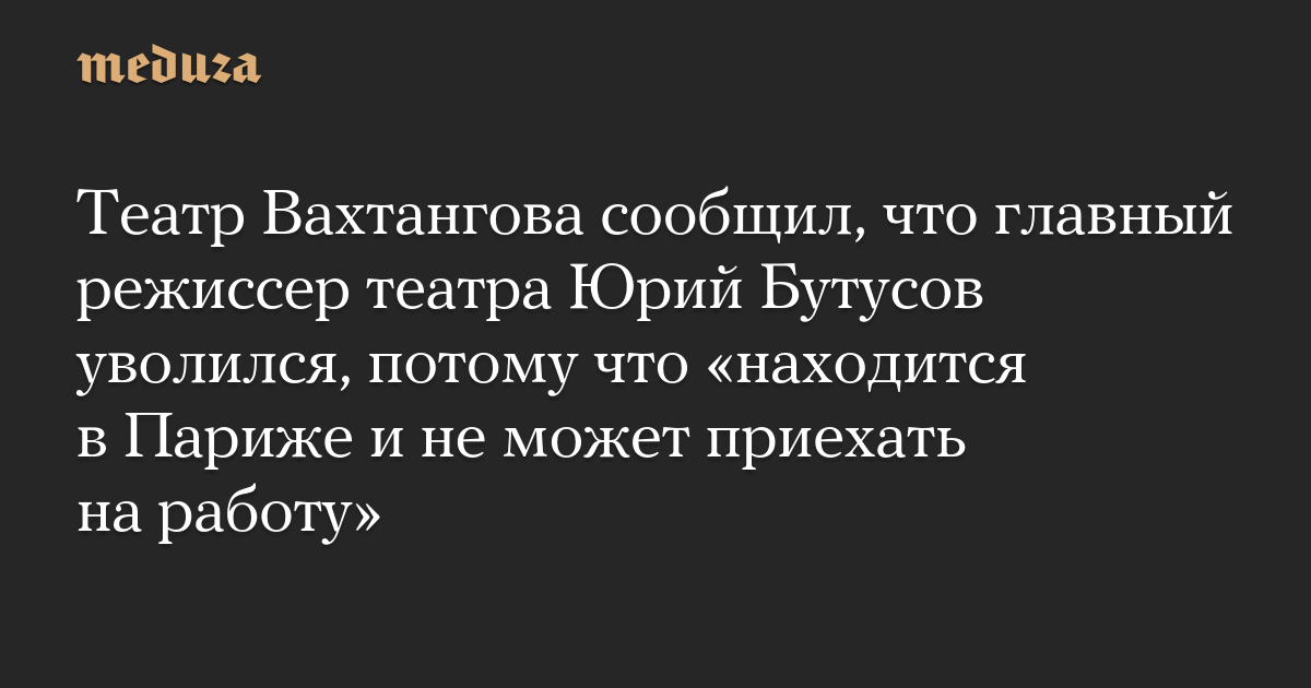 Театр Вахтангова сообщил, что главный режиссер театра Юрий Бутусов уволился, потому что «находится в Париже и не может приехать на работу»