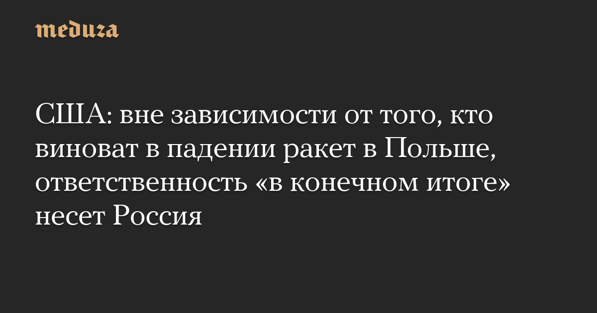 США: вне зависимости от того, кто виноват в падении ракет в Польше, ответственность «в конечном итоге» несет Россия