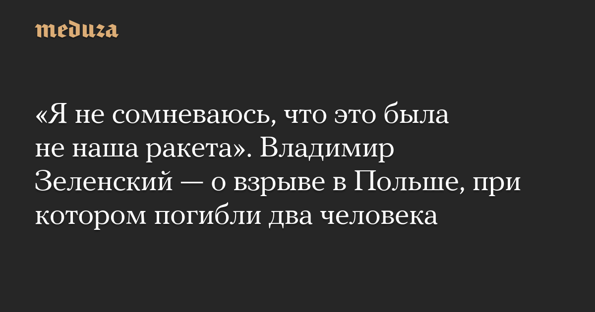 «Я не сомневаюсь, что это была не наша ракета». Владимир Зеленский — о взрыве в Польше, при котором погибли два человека