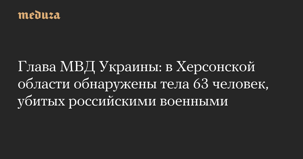 Глава МВД Украины: в Херсонской области обнаружены тела 63 человек, убитых российскими военными