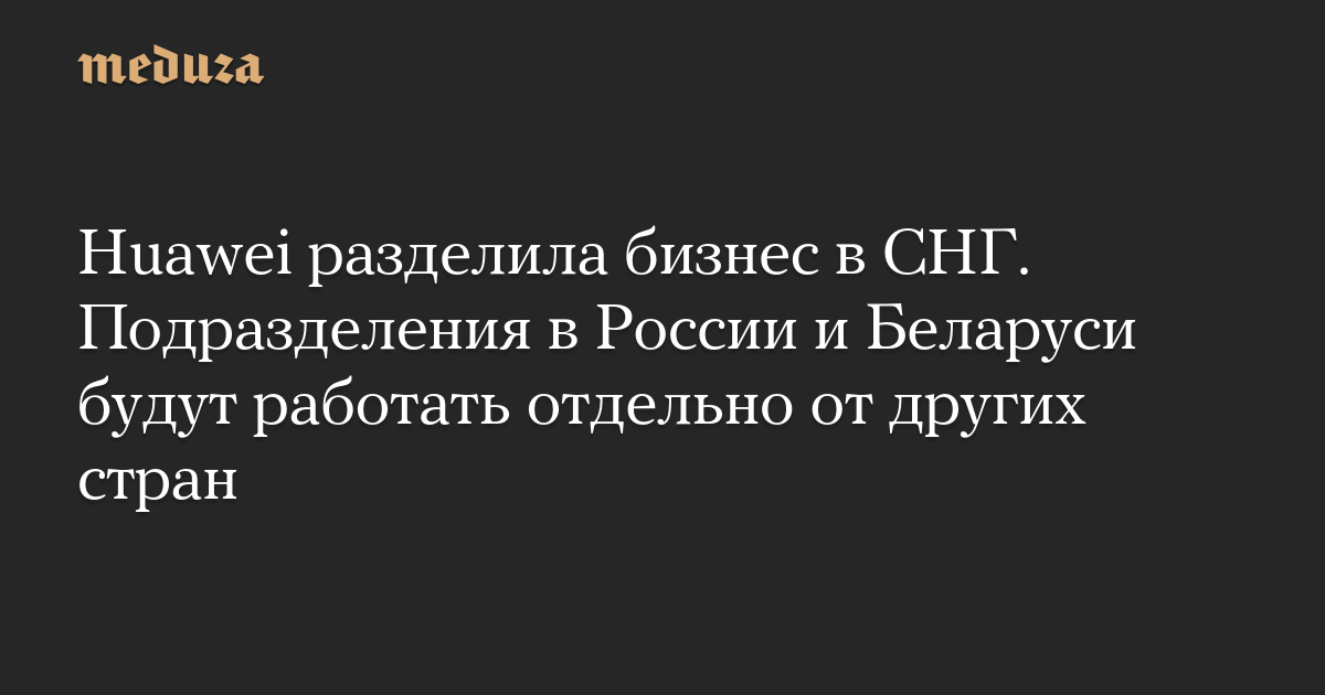 Huawei разделила бизнес в СНГ. Подразделения в России и Беларуси будут работать отдельно от других стран