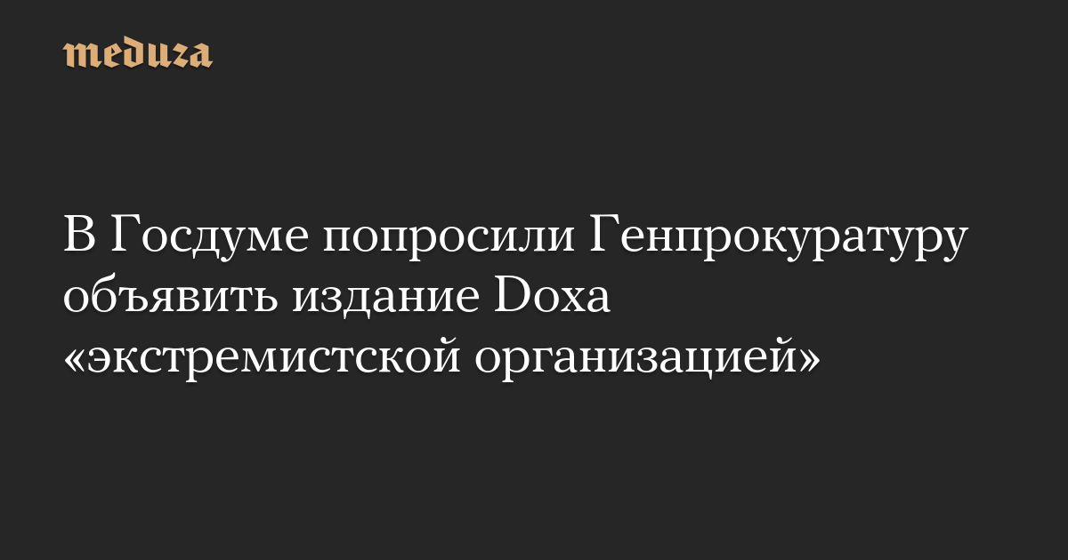 В Госдуме попросили Генпрокуратуру объявить издание Doxa «экстремистской организацией»