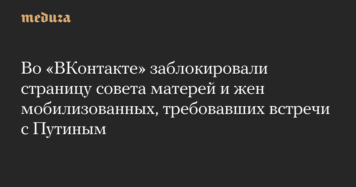 Во «ВКонтакте» заблокировали страницу совета матерей и жен мобилизованных, требовавших встречи с Путиным