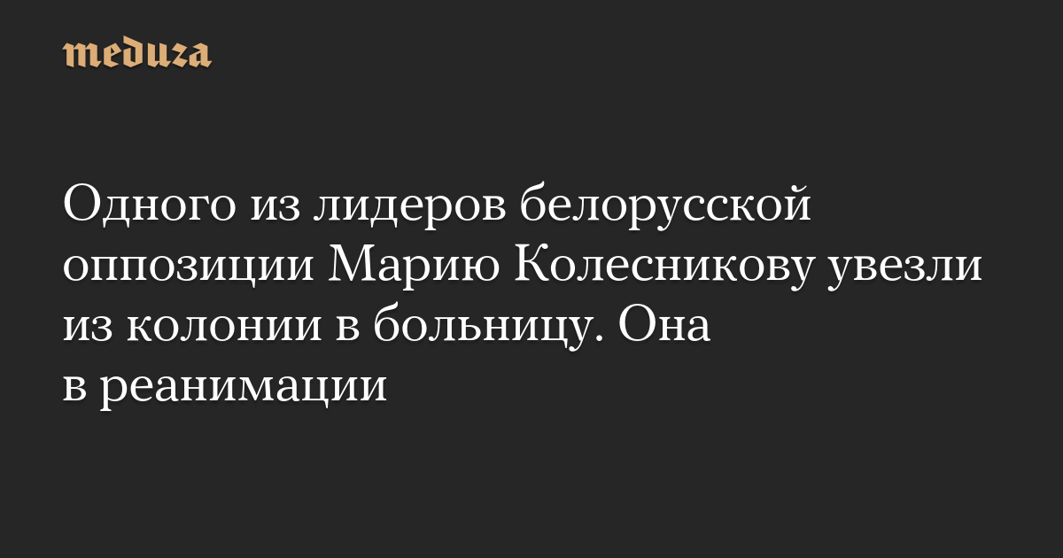 Одного из лидеров белорусской оппозиции Марию Колесникову увезли из колонии в больницу. Она в реанимации