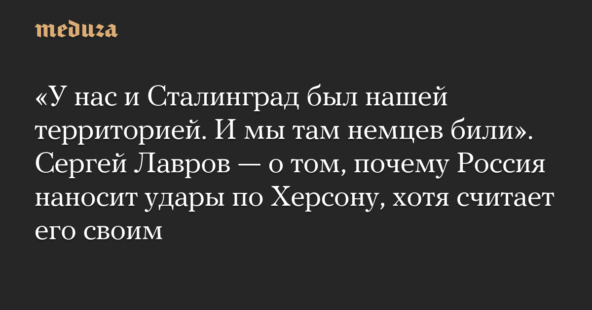 «У нас и Сталинград был нашей территорией. И мы там немцев били». Сергей Лавров — о том, почему Россия наносит удары по Херсону, хотя считает его своим