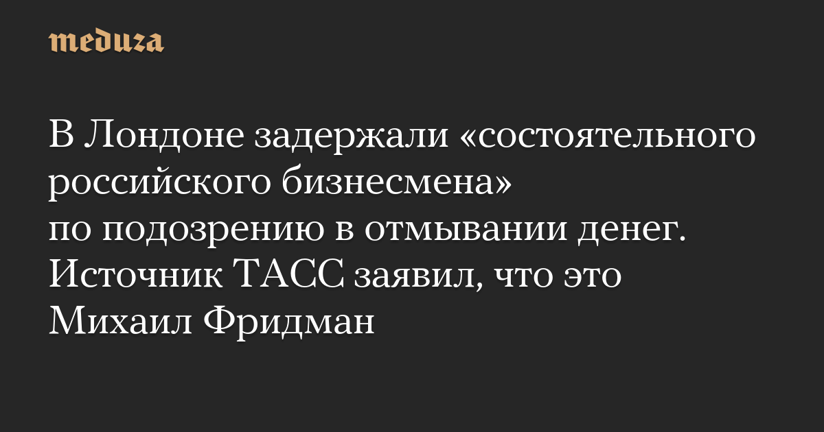 В Лондоне задержали «состоятельного российского бизнесмена» по подозрению в отмывании денег. Источник ТАСС заявил, что это Михаил Фридман