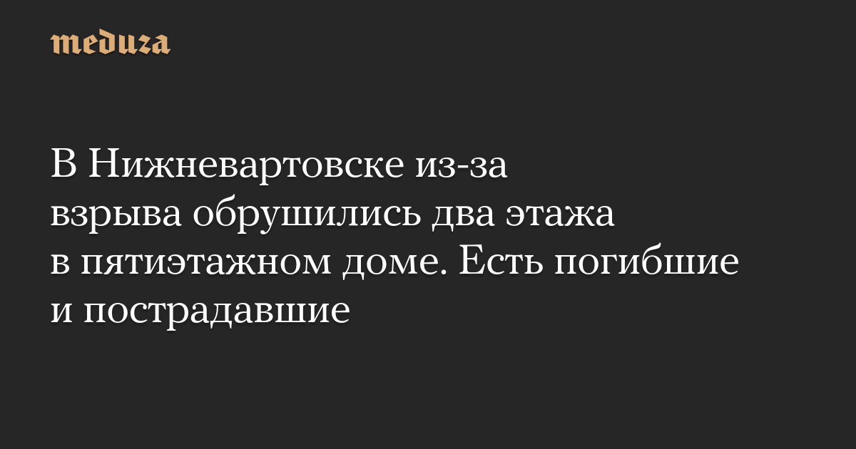 В Нижневартовске из-за взрыва обрушились два этажа в пятиэтажном доме. Есть погибшие и пострадавшие