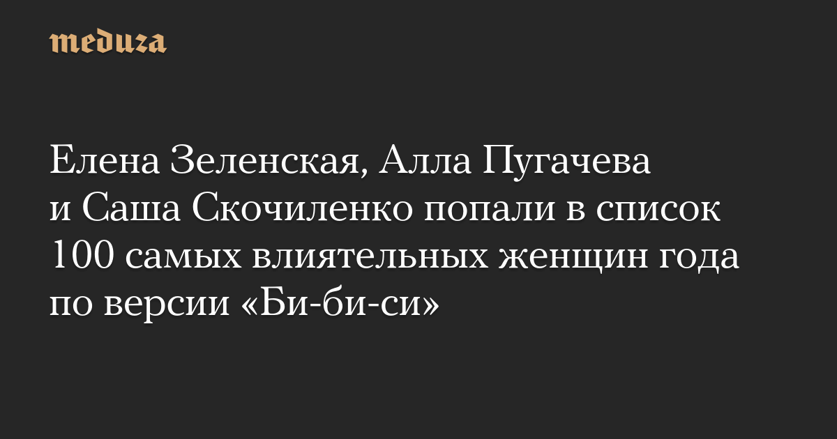 Елена Зеленская, Алла Пугачева и Саша Скочиленко попали в список 100 самых влиятельных женщин года по версии «Би-би-си»