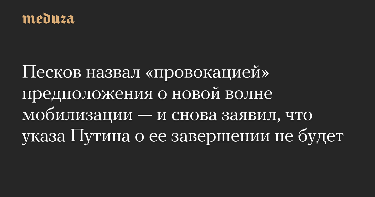 Песков назвал «провокацией» предположения о новой волне мобилизации — и снова заявил, что указа Путина о ее завершении не будет