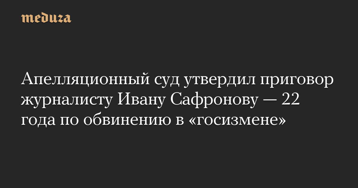 Апелляционный суд утвердил приговор журналисту Ивану Сафронову — 22 года по обвинению в «госизмене»