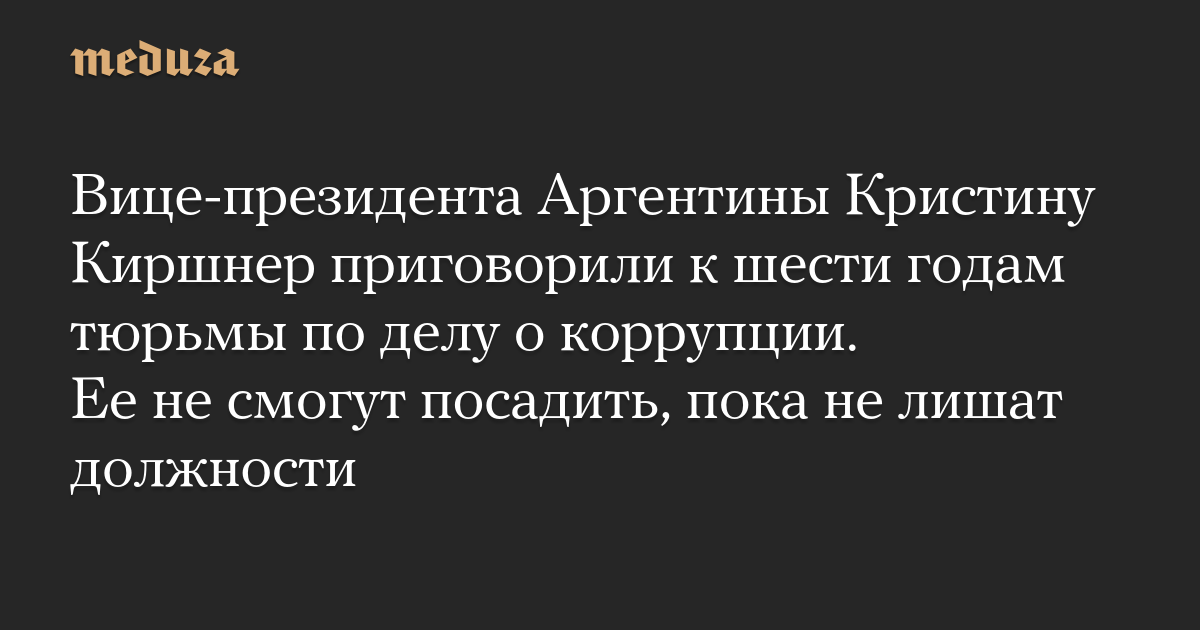Вице-президента Аргентины Кристину Киршнер приговорили к шести годам тюрьмы по делу о коррупции. Ее не смогут посадить, пока не лишат должности