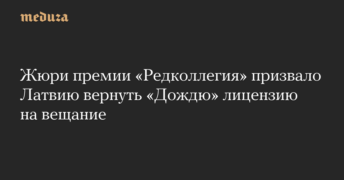 Жюри журналистской премии «Редколлегия» выпустило заявление в поддержку телеканала «Дождь» после того, как власти Латвии аннулировали его лицензию на вещание.