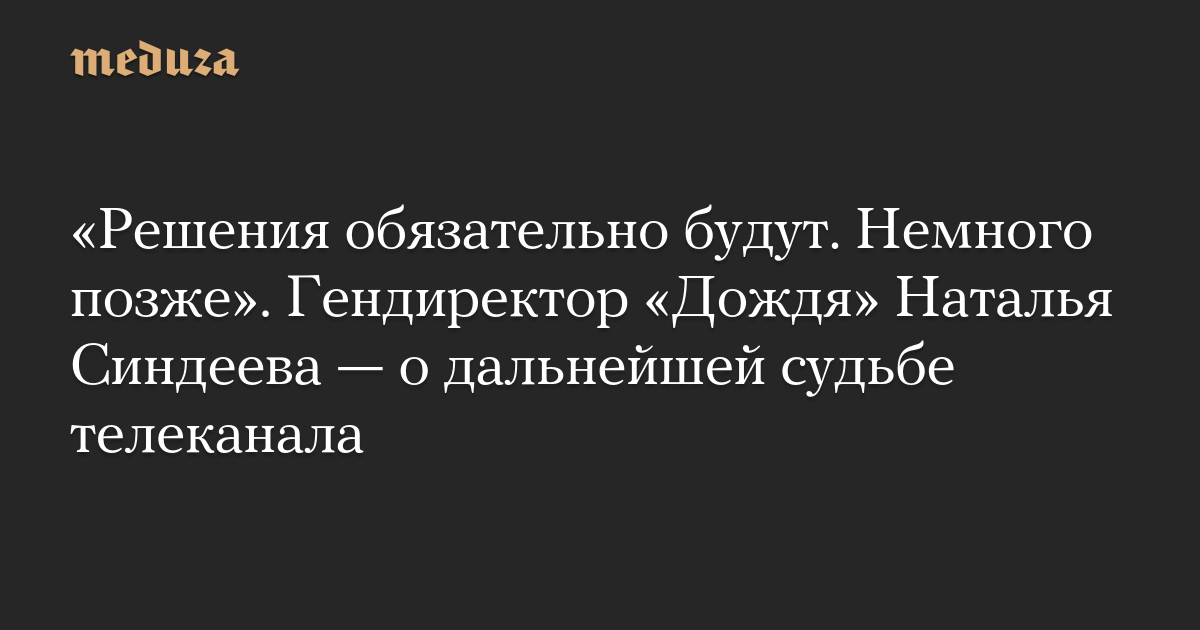 «Решения обязательно будут. Немного позже». Гендиректор «Дождя» Наталья Синдеева — о дальнейшей судьбе телеканала