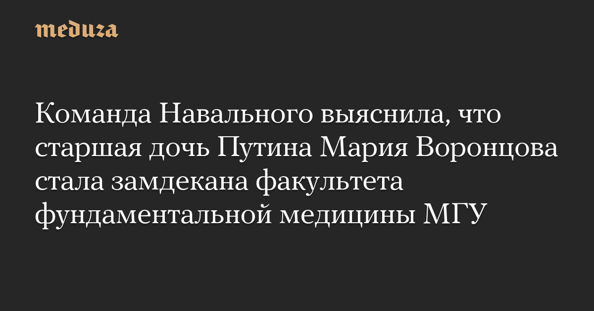 Руководитель отдела расследований команды Алексея Навального Мария Певчих обнаружила, что старшая дочь президента РФ Мария Воронцова назначена одним из заместителей декана факультета фундаментальной медицины Московского государственного университета.