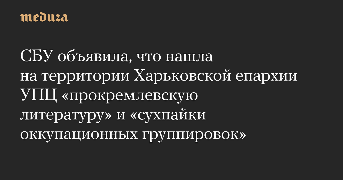 СБУ объявила, что нашла на территории Харьковской епархии УПЦ «прокремлевскую литературу» и «сухпайки оккупационных группировок»