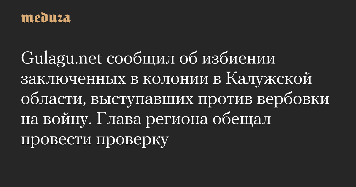 Gulagu.net сообщил об избиении заключенных в колонии в Калужской области, выступавших против вербовки на войну. Глава региона обещал провести проверку