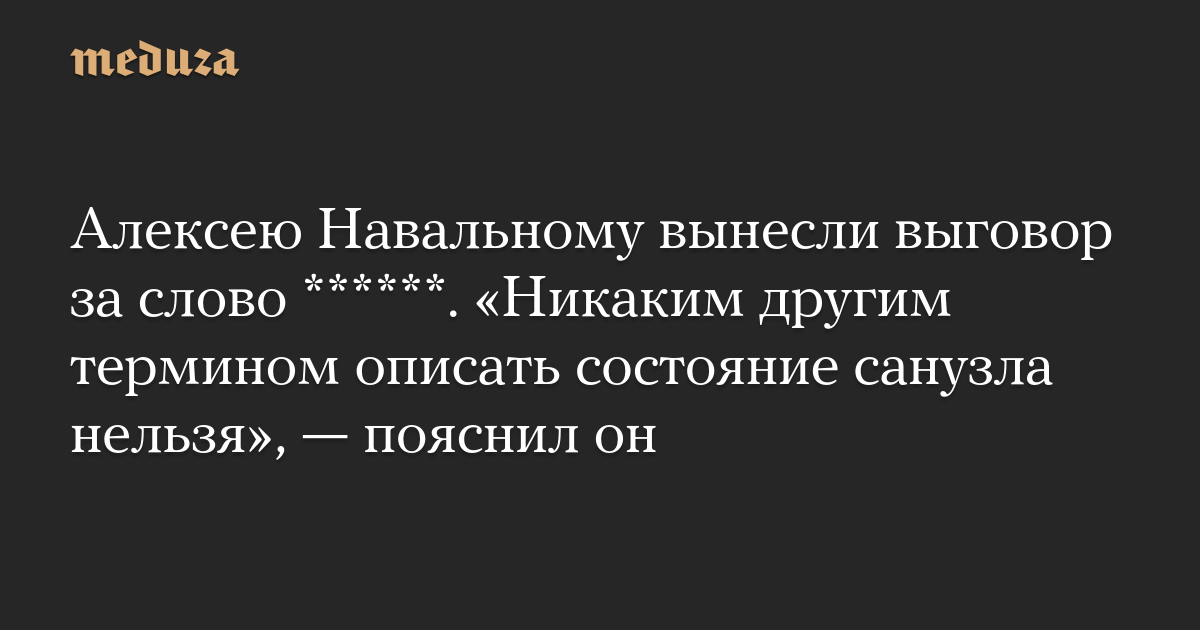 Алексею Навальному вынесли выговор за слово ******. «Никаким другим термином описать состояние санузла нельзя», — пояснил он