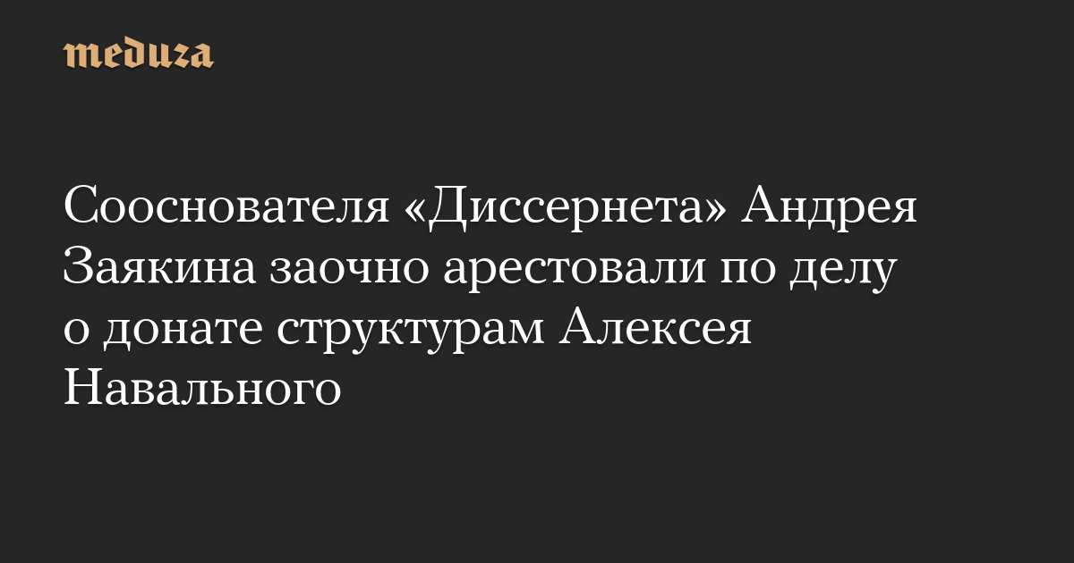 Сооснователя «Диссернета» Андрея Заякина заочно арестовали по делу о донате структурам Алексея Навального