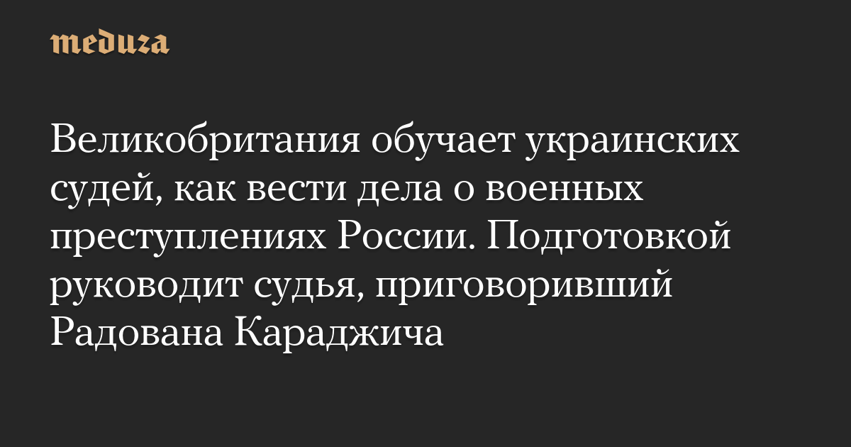 Великобритания обучает украинских судей, как вести дела о военных преступлениях России. Подготовкой руководит судья, приговоривший Радована Караджича
